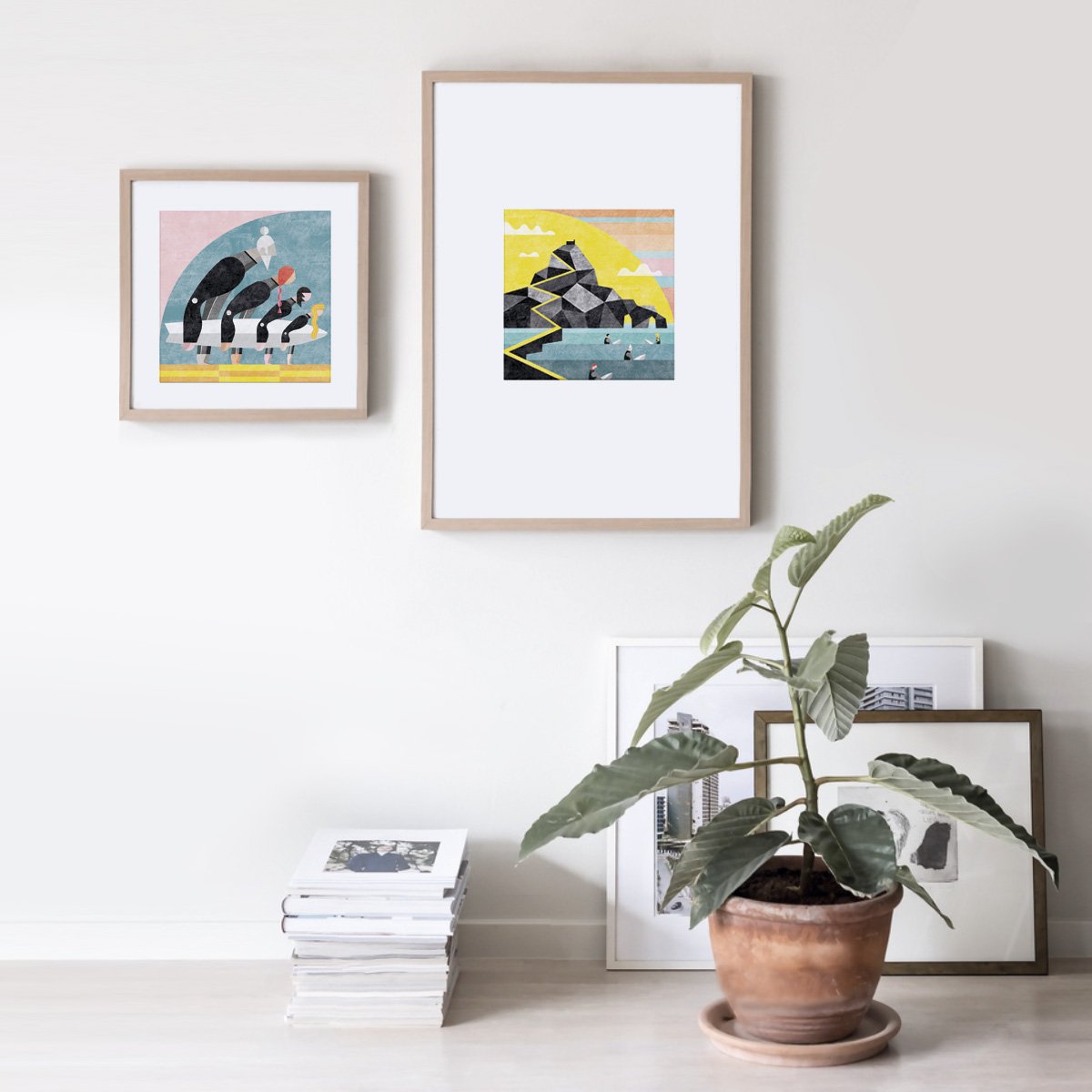 Pack de dos láminas tamaño 30x30 diseñadas por Mooneki, impresas en papel de alta calidad. No incluyen marco.